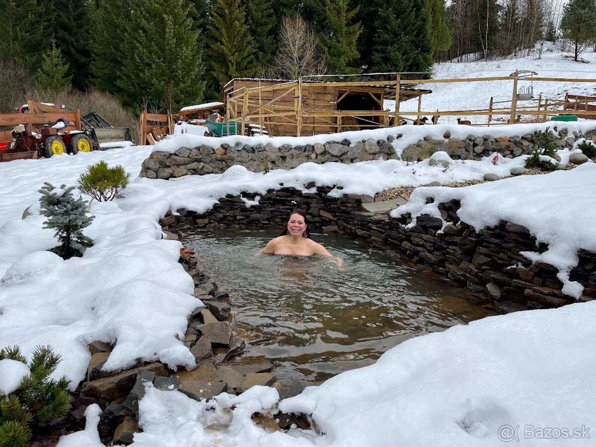 Priamo medzi jazierkami je pod holým nebom umiestnená horúca kaďa a zbojnícka potná chyža s ozajstným ohňom aj pravým kúrením na drevo.